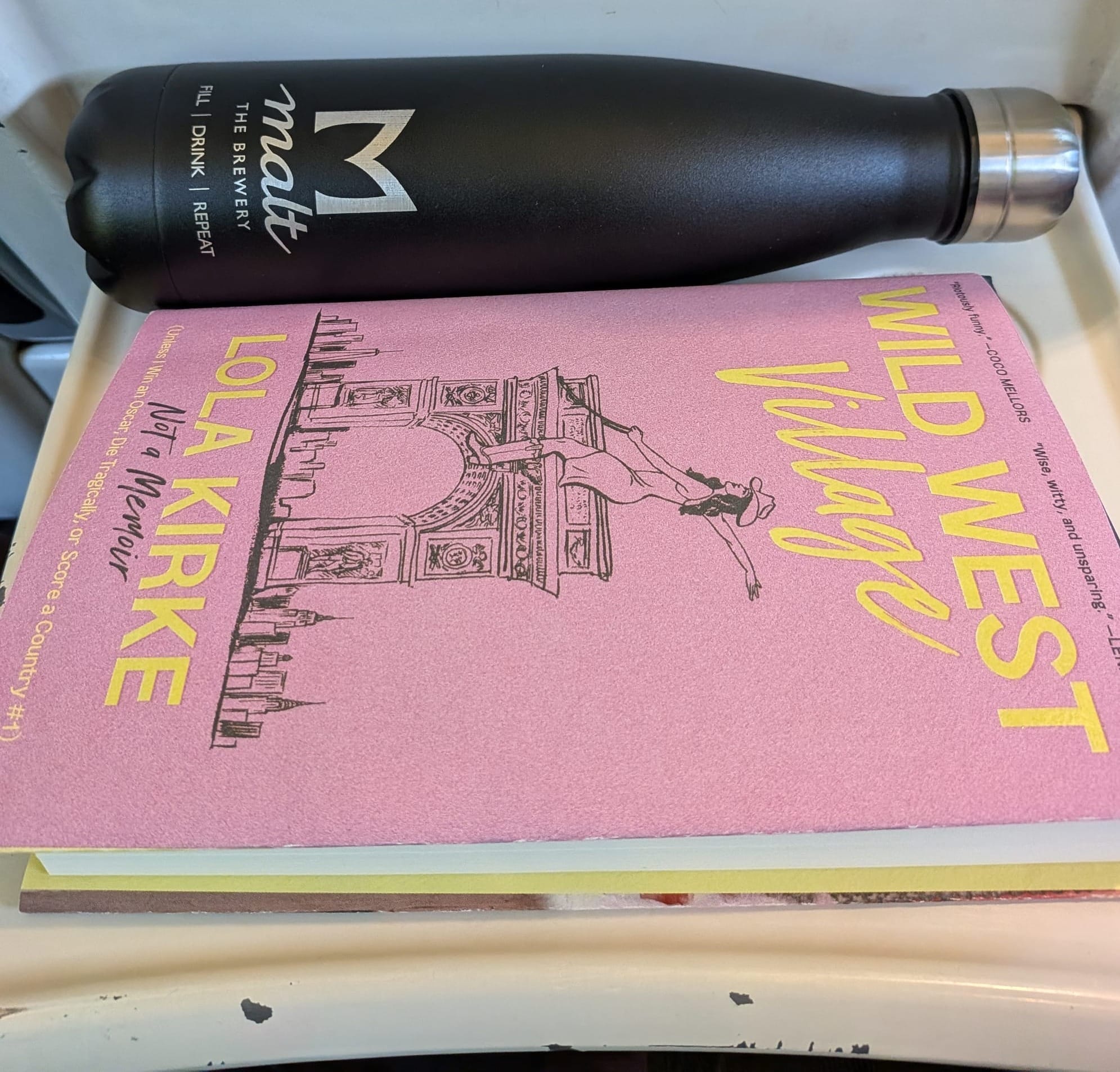 Two weeks later, I was travelling home on the train from Manchester with colleagues. I had a bottle of water or zero alcohol beer (not sure) and I was reading Wild West Village by Lola Kirke for a review. Earlier that day Lola had re-shared my photo of her book on the train with the water bottle that looked like it was full of beer. I understand better now why that amused Lola.
